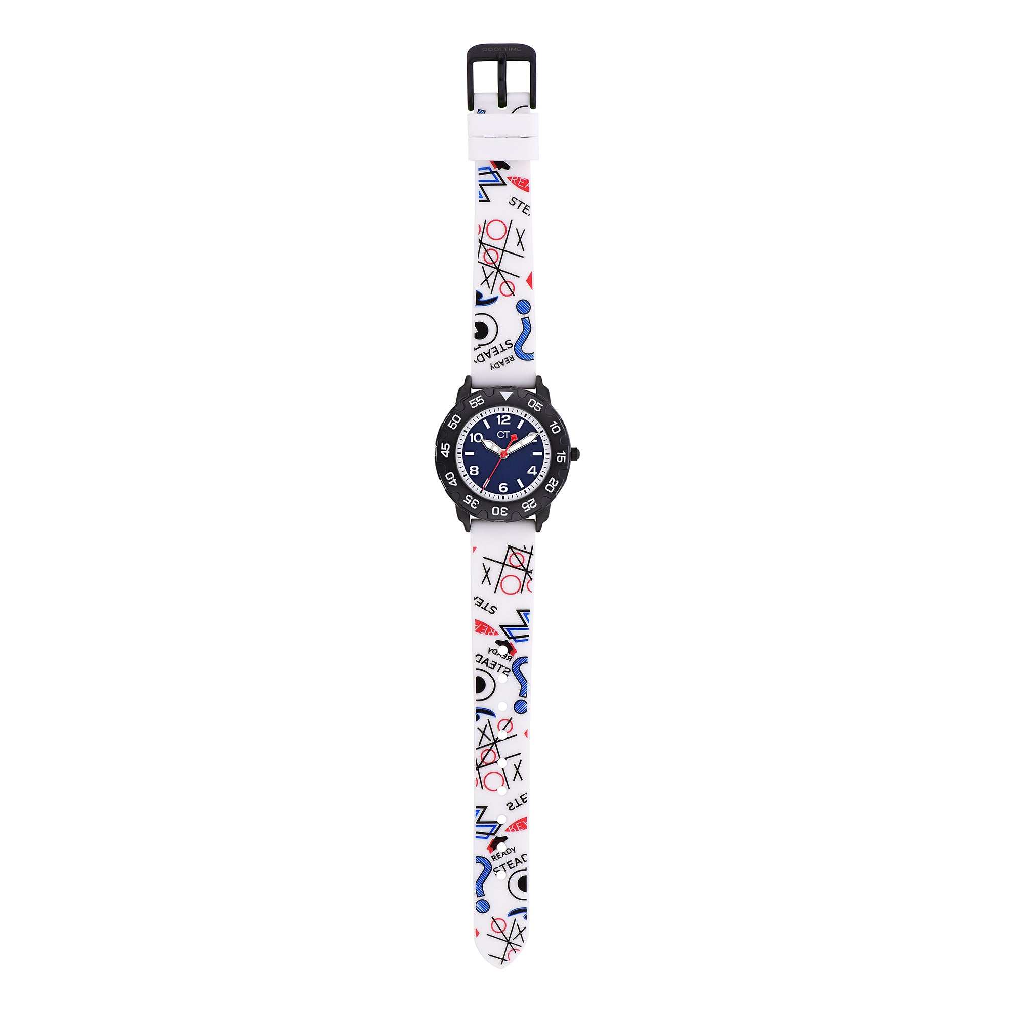 Diese sportlich-coole Kinderuhr mit drehbarem Topring der Marke Cool Time ist für jedes Abenteuer bereit und macht den Schulstart kinderleicht. Neben dem coolen "Back to School"-Design wurde bei der Entwicklung auch auf die Qualität besonders viel Wert gelegt. So ist die Kinderuhr mit Sillikonarmband schadstoffgeprüft, widerstandsfähig, abwaschbar und sehr komfortabel zu tragen. Dank klarer Zahlen und präzisen Minuteneinteilungen wird das Erlernen der Uhrzeit zum Kinderspiel. Ein zuverlässiges Quarzwerk und kratzunempfindliches Mineralglas runden die Kinderuhr optimal ab. Verpackt im coolen Mäppchen ist die Uhr ein ideales Geschenk und sorgt auch in der Schule für "Cool Time".